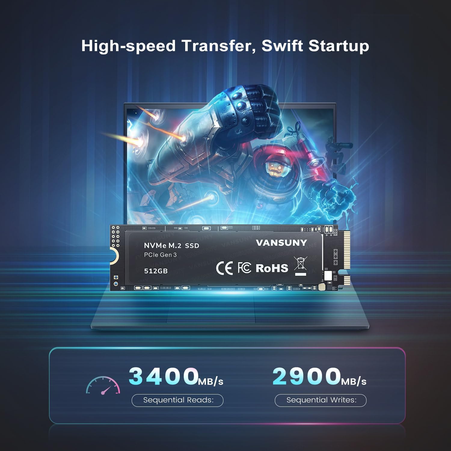 Vansuny 512GB NVMe M.2 Internal Solid State Drive PCIe 3.0